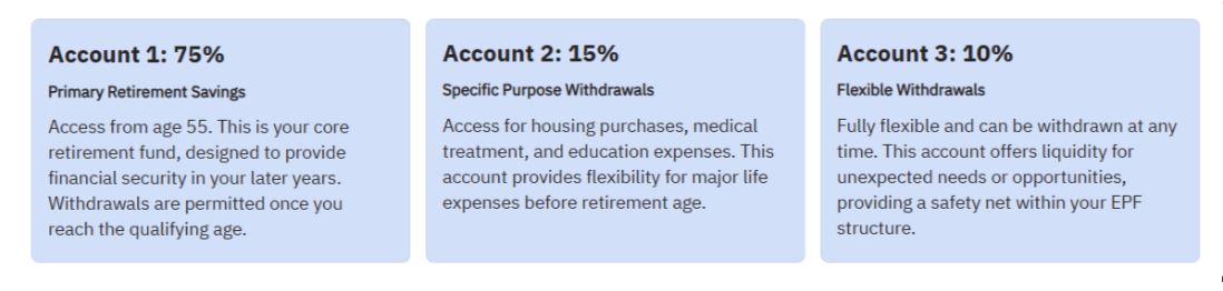 As to how your funds are allocated in EPF, in May 2024, EPF officially restructured the way it allocates its contributions. Previously, members had two accounts, Account 1 and Account 2, where Account 1 held 70% of the contributions and Account 2 held 30%.